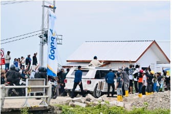 Sepanjang perjalanan menuju lokasi acara di Desa Kertamukti, Kecamatan Cilebar, ribuan warga terlihat memadati sisi jalan untuk menyaksikan langsung kedatangan Presiden Prabowo. Dari atas kendaraan, Presiden Prabowo menyapa warga dengan ramah, melambaikan tangan, dan beberapa kali menghentikan kendaraan untuk berinteraksi lebih dekat dengan masyarakat.